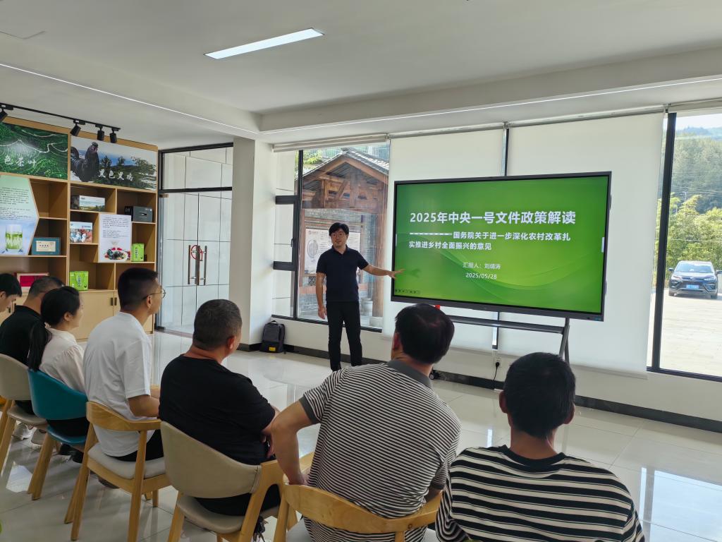 在衫林湾村委会,“中心”刘靖涛博士作主题为《2025年中央一号文件政策解读》的宣讲活动。宣讲围绕《2025年中共中央国务院关于进一步深化农村改革扎实推进乡村全面振兴的意见》展开,紧扣新时代“三农”工作主线和川东北丘陵山区实际,聚焦强化农业科技支撑、壮大乡村富民产业、巩固脱贫攻坚成果等关键部署,为乡村发展打通“最后一公里”的政策认知脉络。刘博士用接地气和老百姓能听懂的语言让中央文件精神在基层落地生根,既让村干部和村民明确了政策发展方向,又提振了他们乡村振兴的信心。
