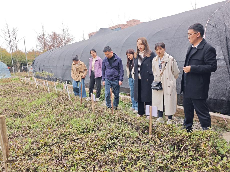 下午,团队实地参观了贵州省梵净山地区生物多样性保护与利用重点实验室以及校内外试验田。铜仁学院谭廷鸿副教授详细介绍了该实验室在生物多样性监测、珍稀物种保育、特色资源开发等方面的研究进展,并在试验田中展示了植物资源保护与利用研究团队在地果等种质资源收集及应用成果。